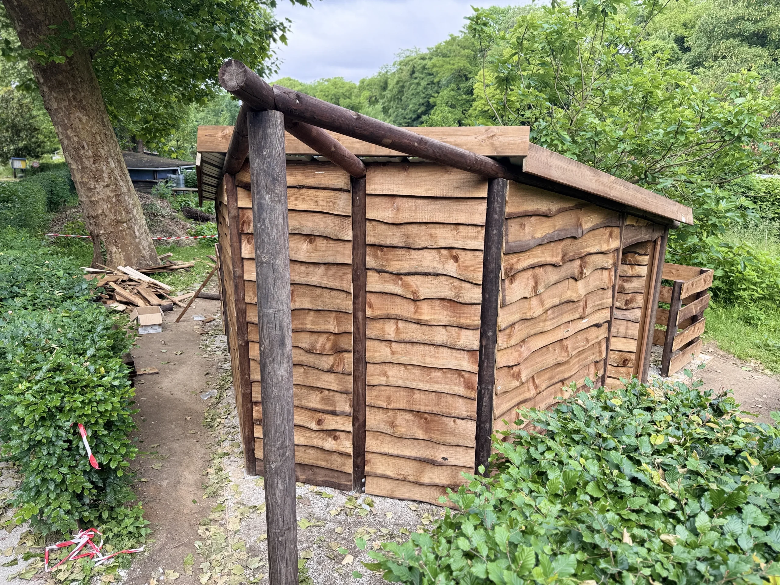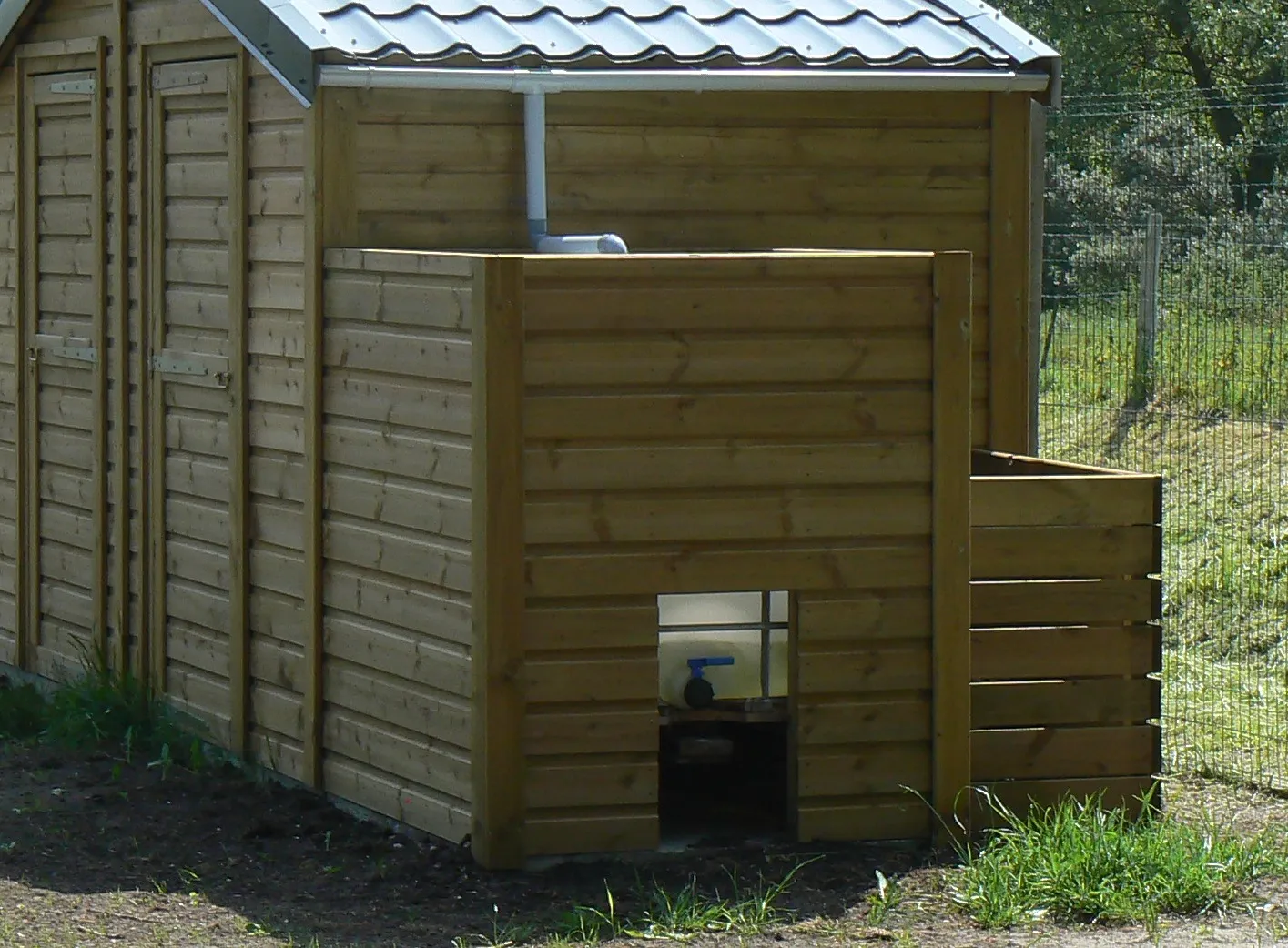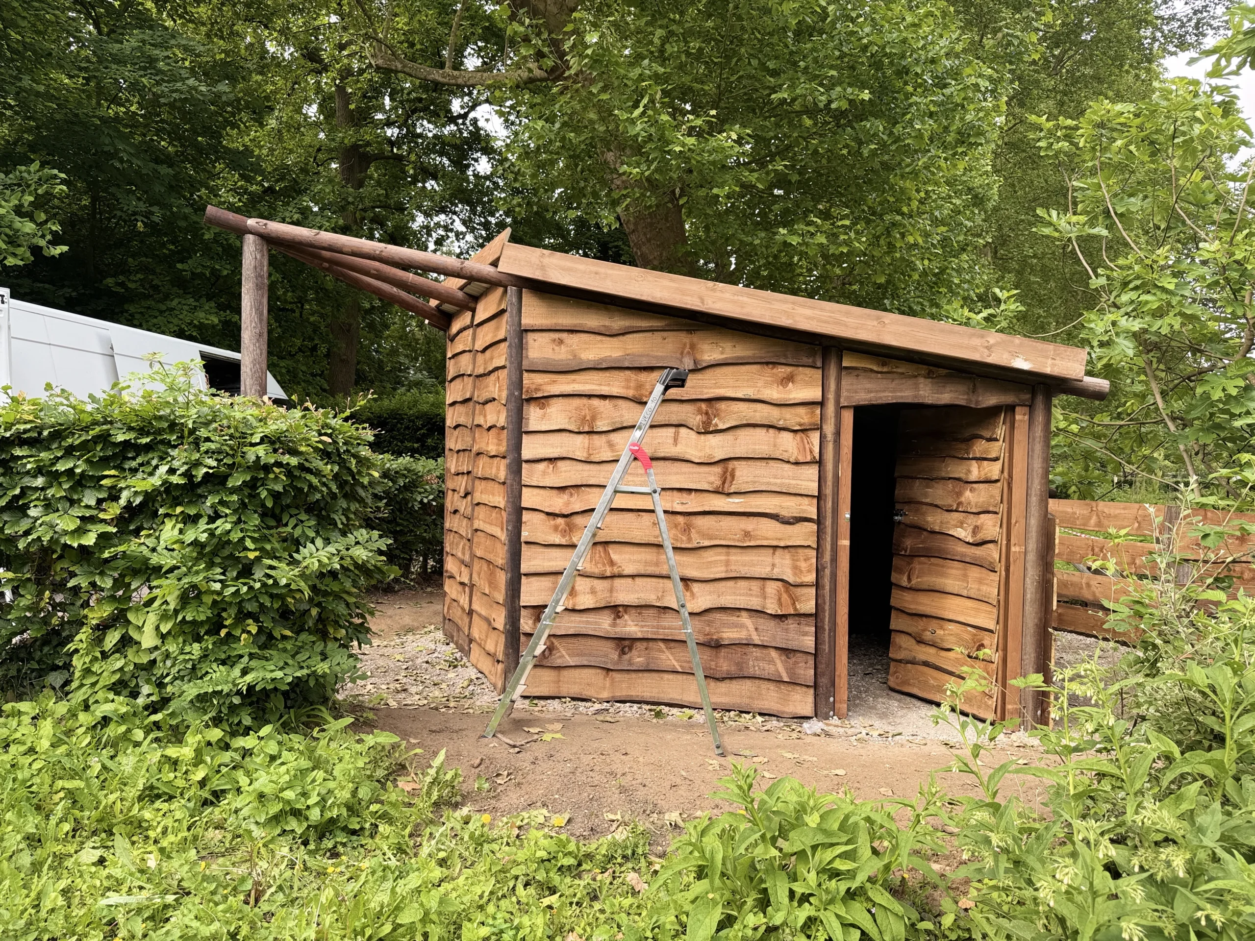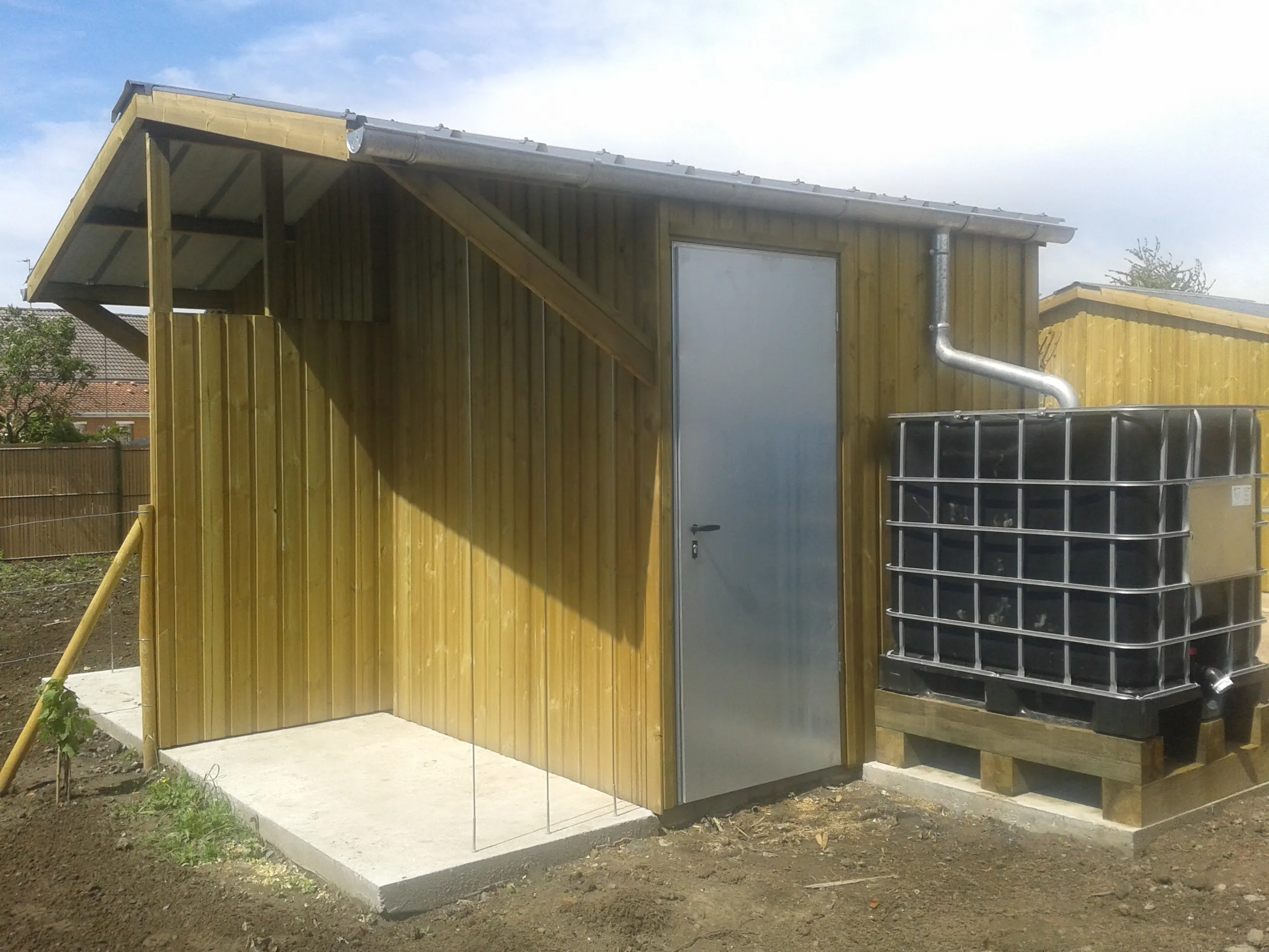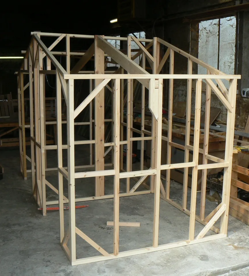 Les abris sont fabriqués en panneaux constitués d’une ossature en chevrons avec des clins rainures/languettes en bardage.