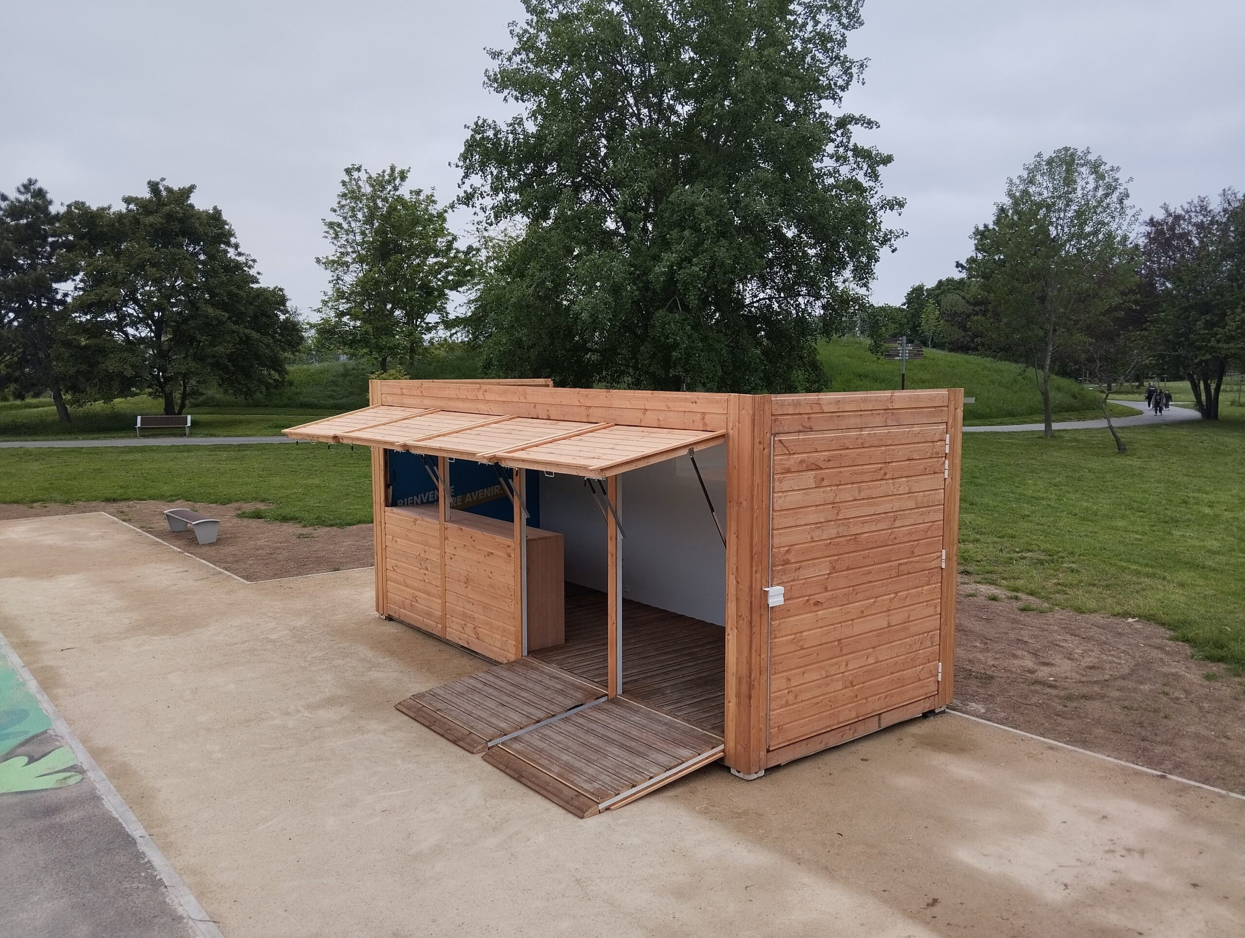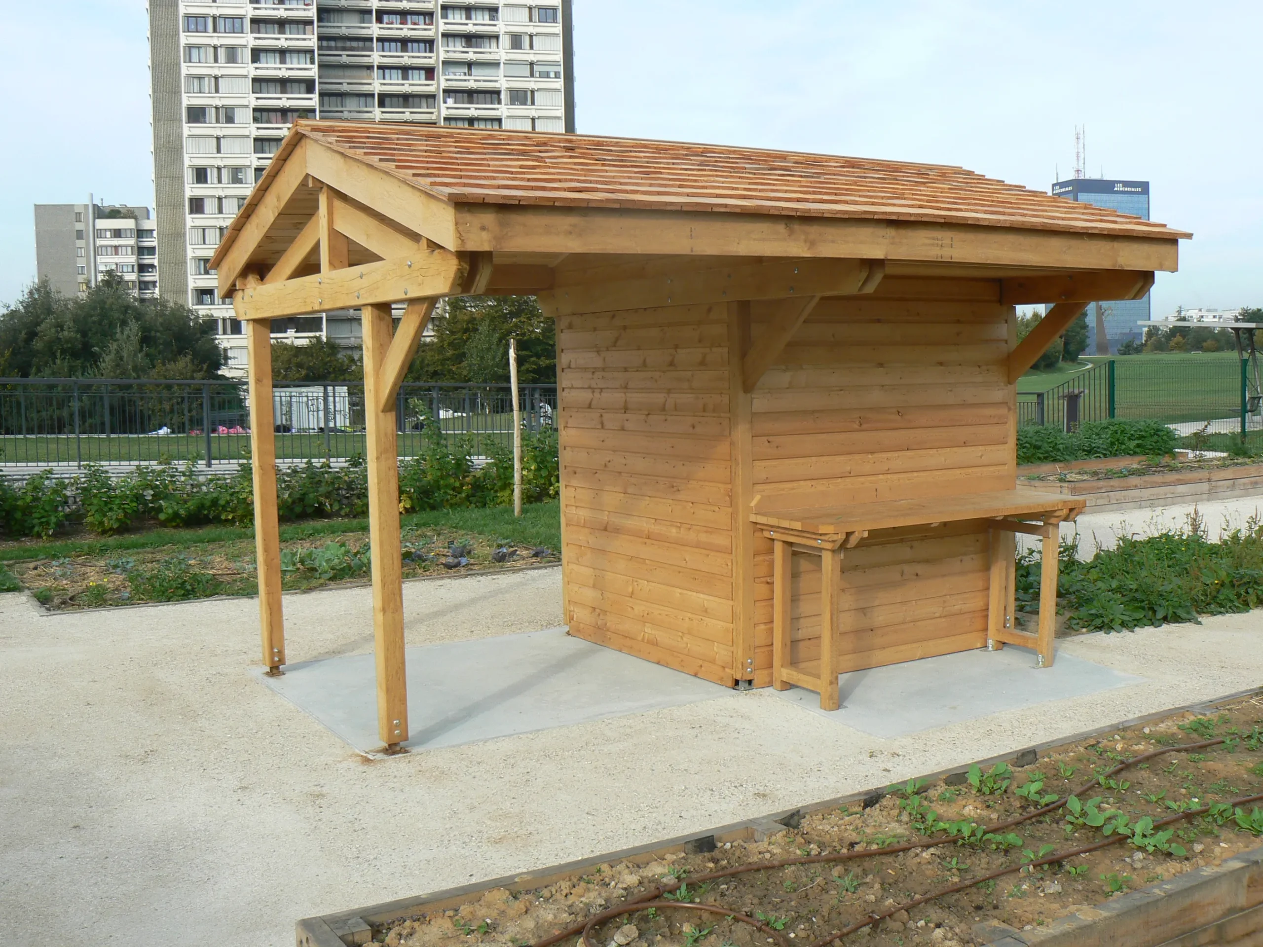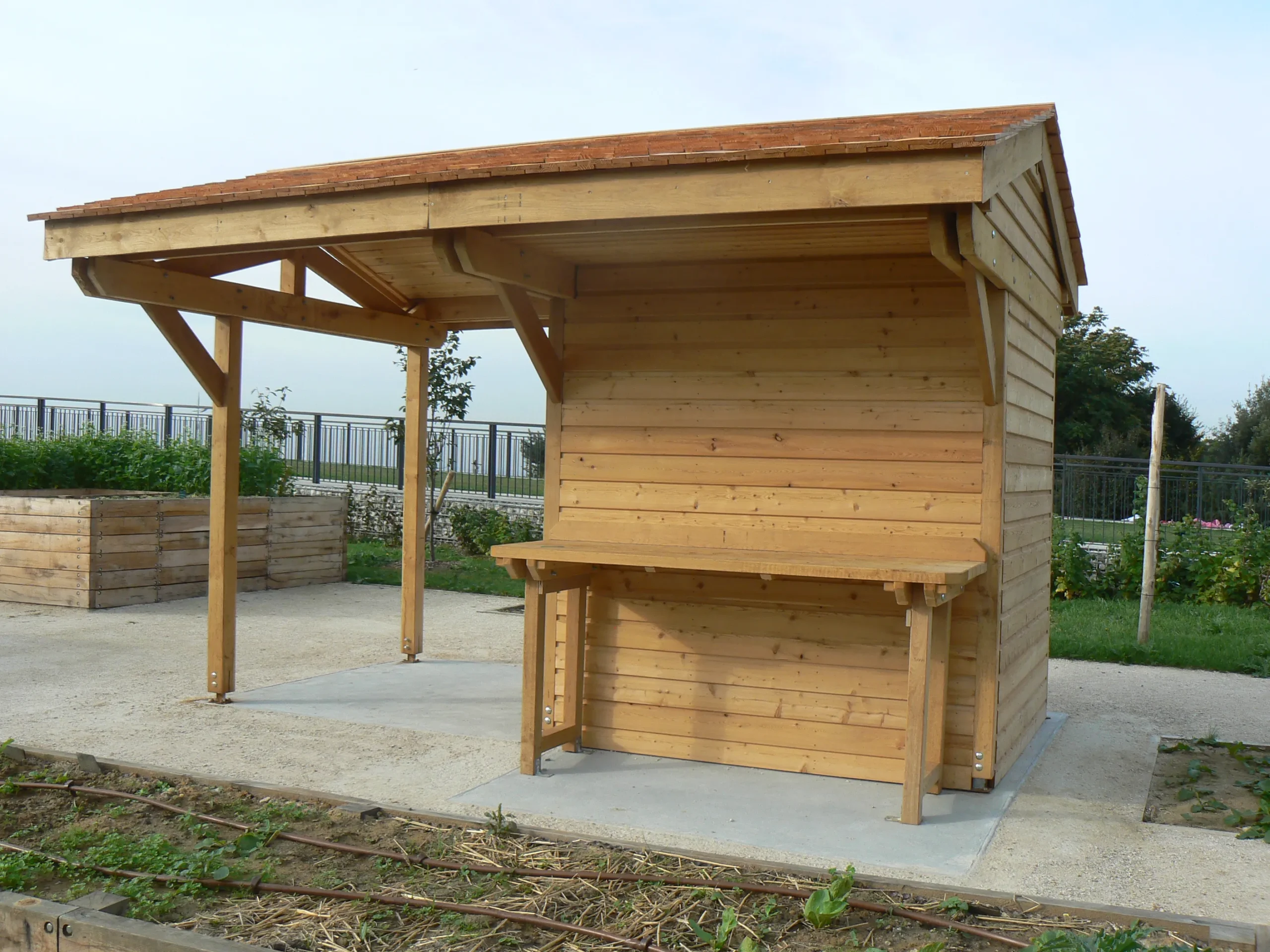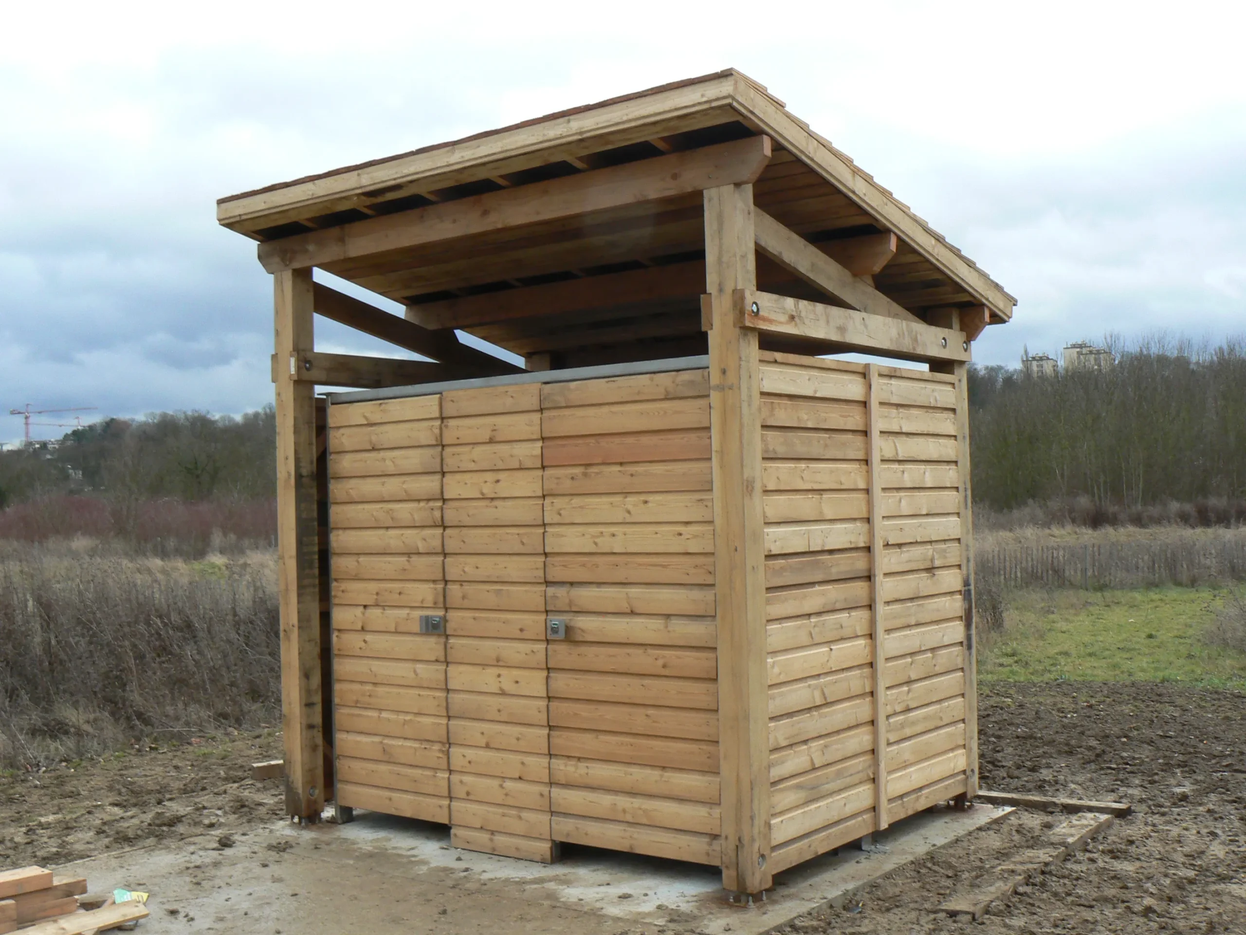Bâtiments accueillant le public, préaux, auvents, carports, abris de rangement, chalets pour billetterie ou vente, locaux abritant des toilettes sont ainsi réalisés en fonction du cahier des charges et des attentes du client.