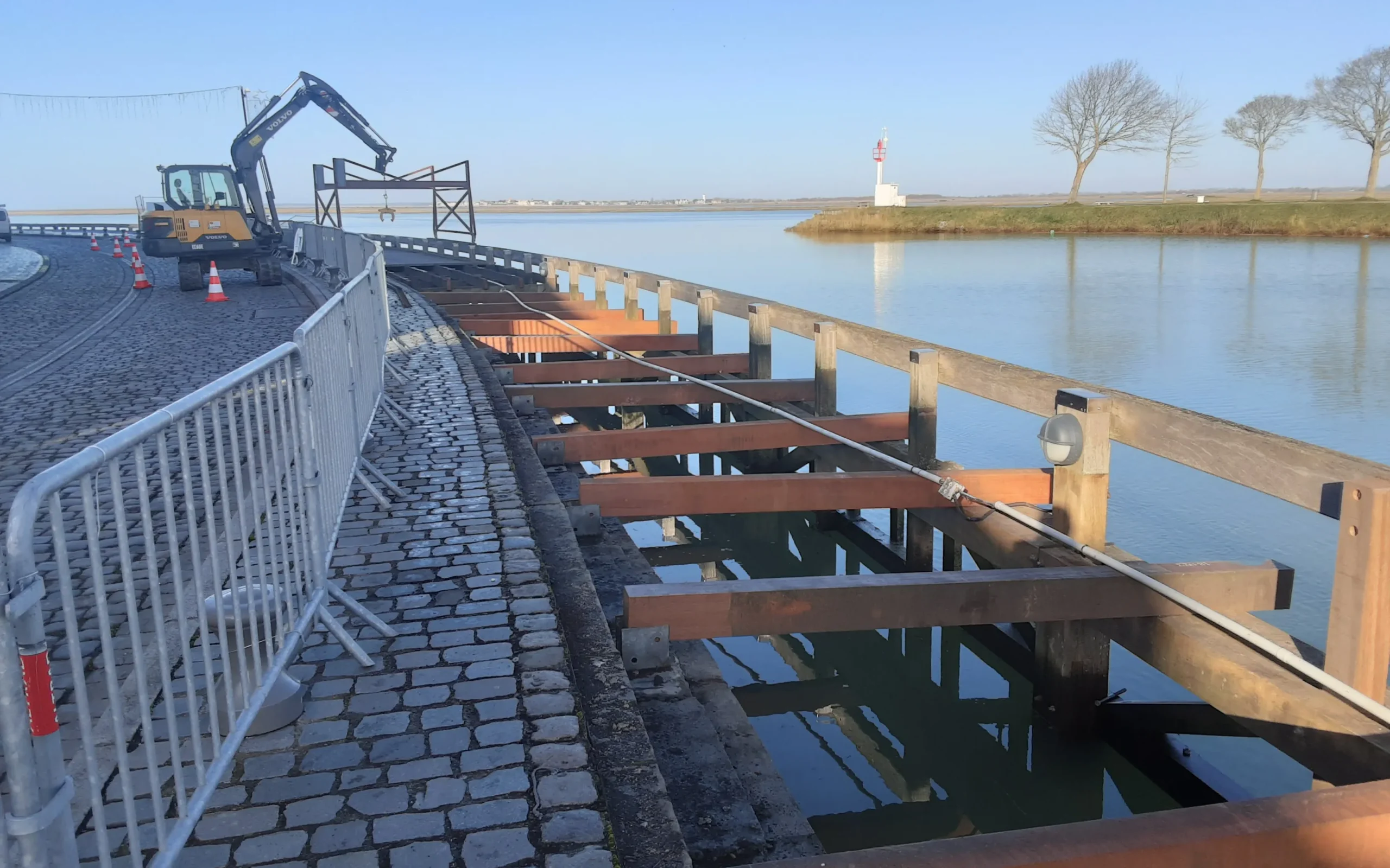 Définition : « Les estacades (ou jetées) sont des ouvrages d’accueil du public souvent réalisés sur pilotis placés parallèlement au bord d’un cours d’eau ou du bord de mer »