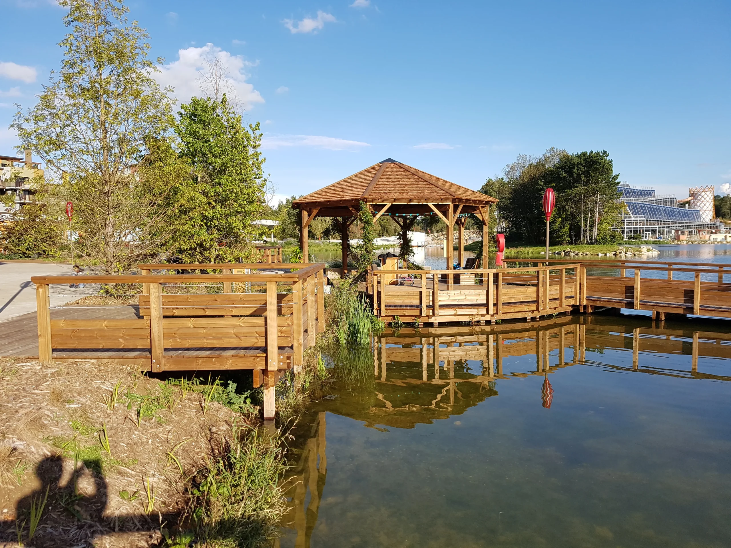 Dans le cadre de la réalisation de bâtiments d’accueil du public, Marcanterra réalise des kiosques carrés, hexagonaux ou octogonaux de dimensions variables selon l’utilisation du bâtiment.