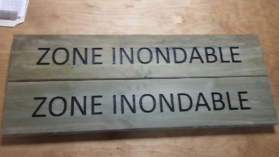 Les visuels de signalétique sont imprimés sur film PVC collé sur plaque support en dibon ou en komacel.