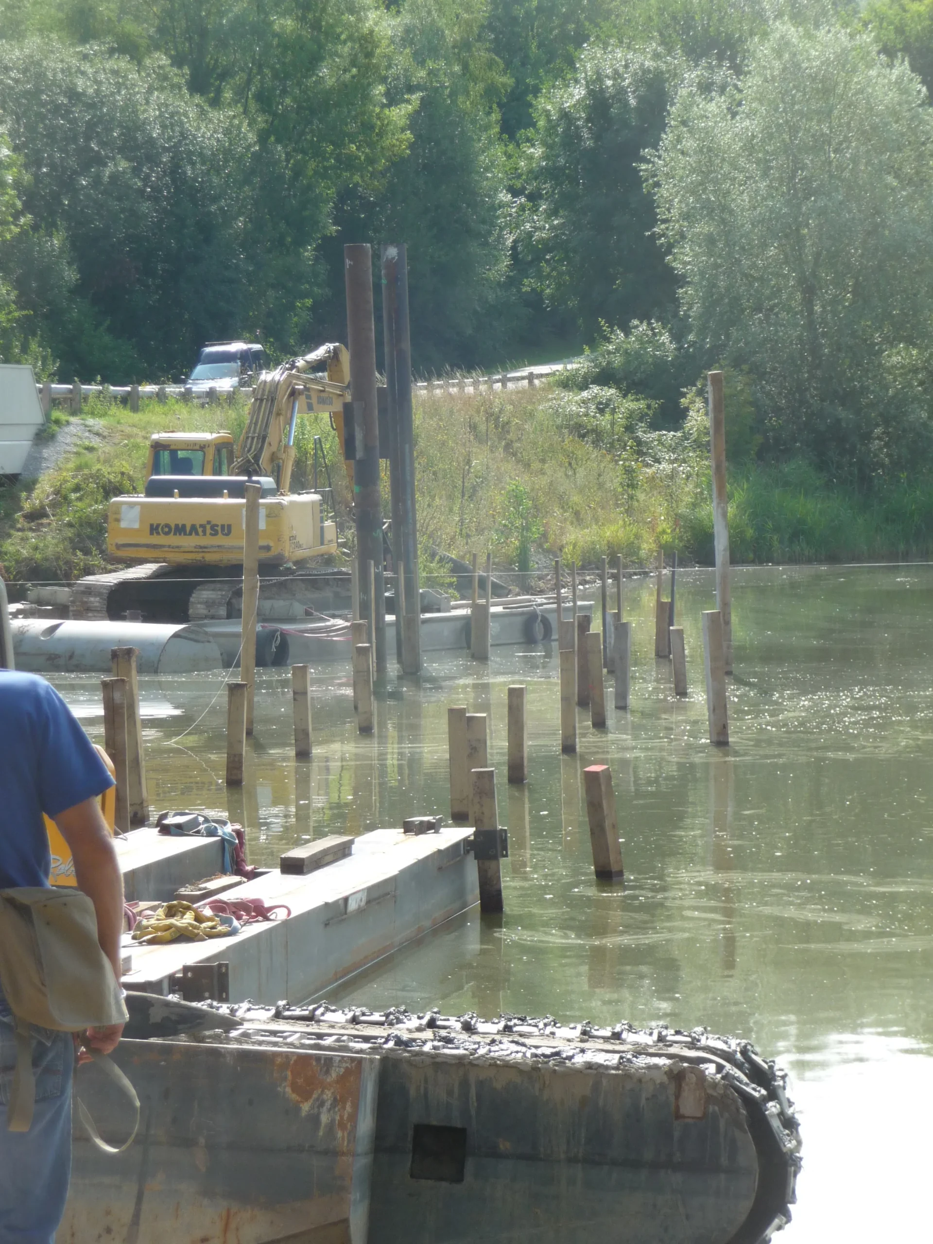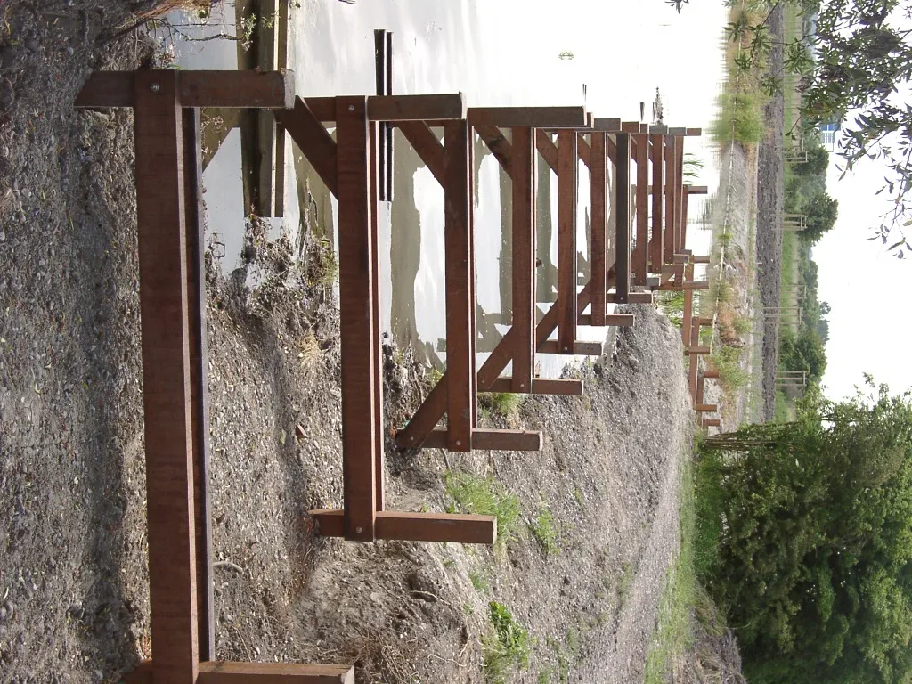 Les portiques comportent 2 ou 3 pieux, en fonction de la largeur du platelage, sur lesquels sont moisées des traverses.