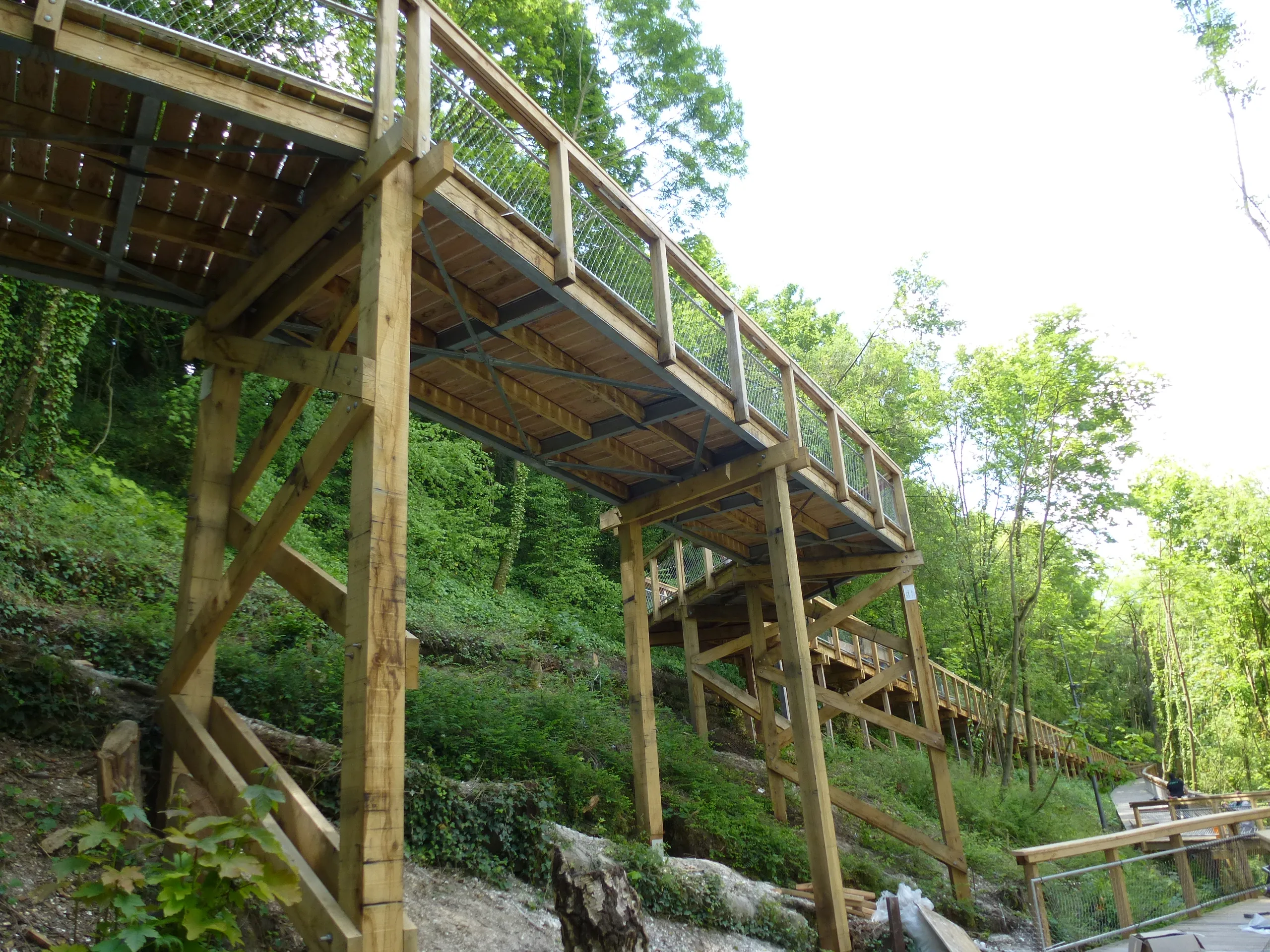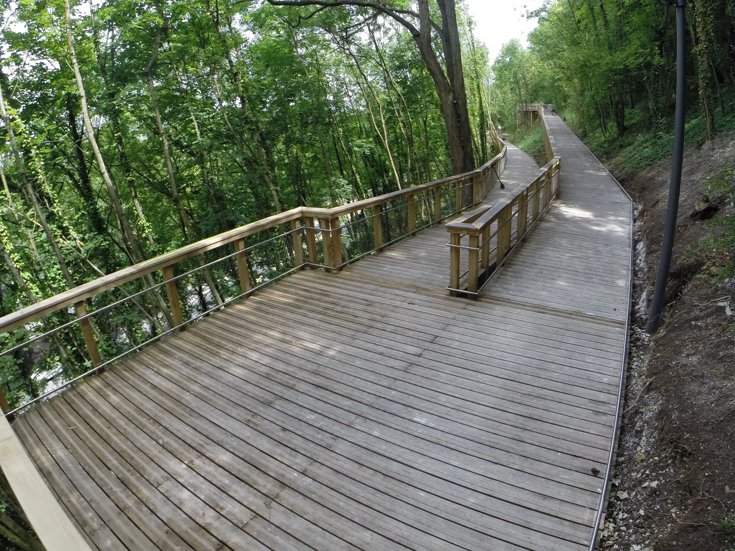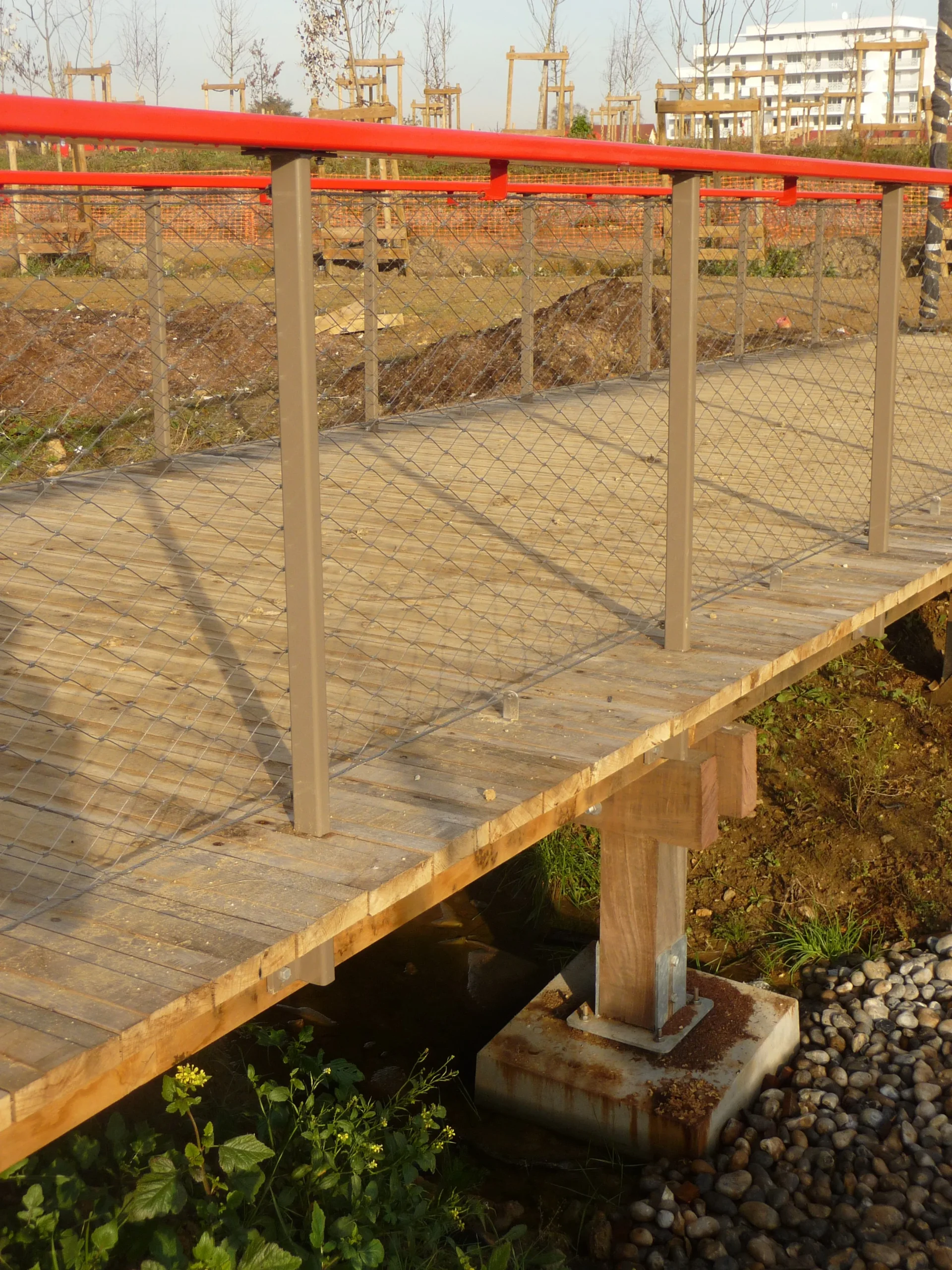 Définition : « Cheminements surélevés en bois équipés de garde-corps reposant sur des portiques intermédiaires de reprise de charge fichés dans le terrain »