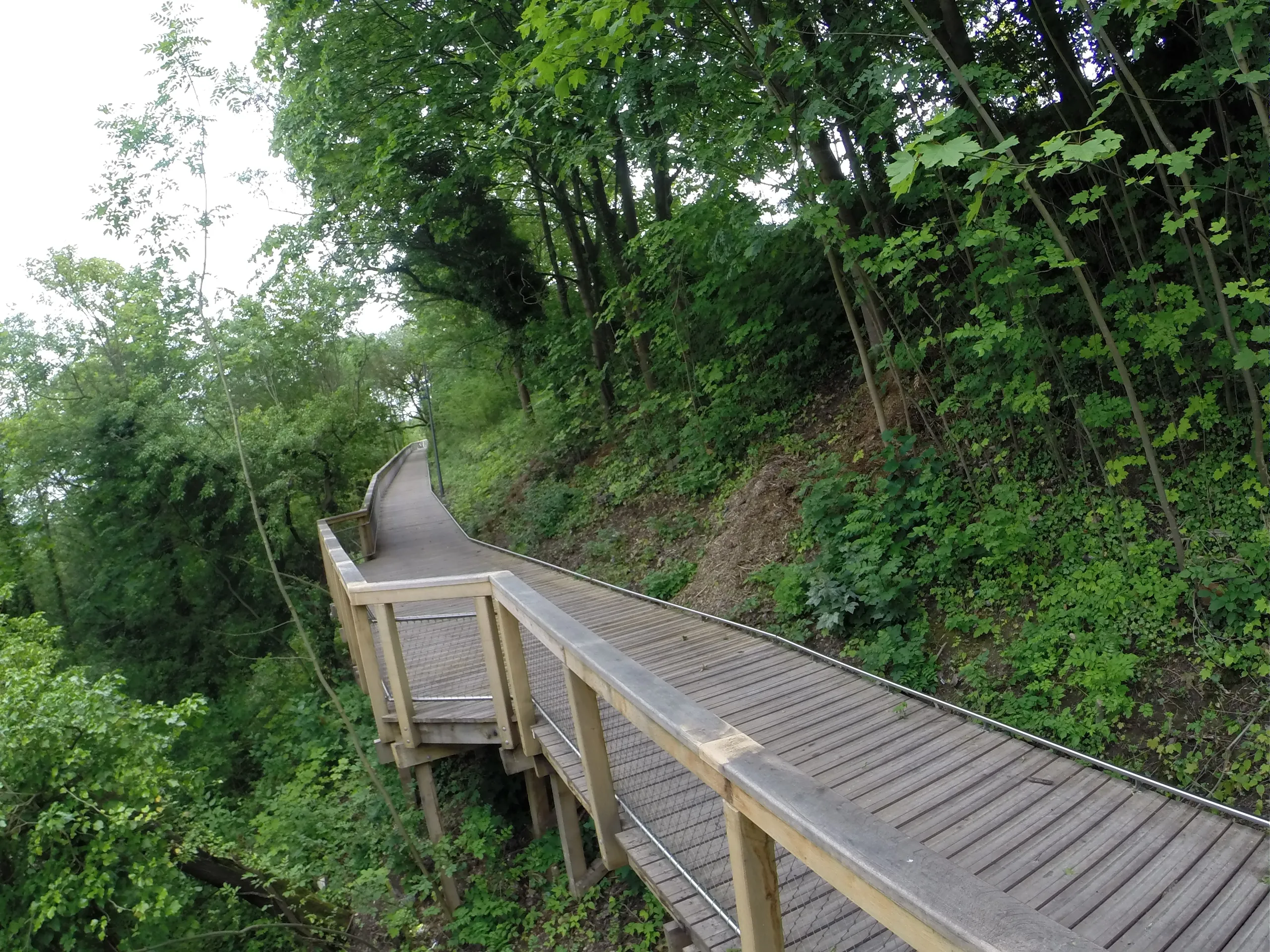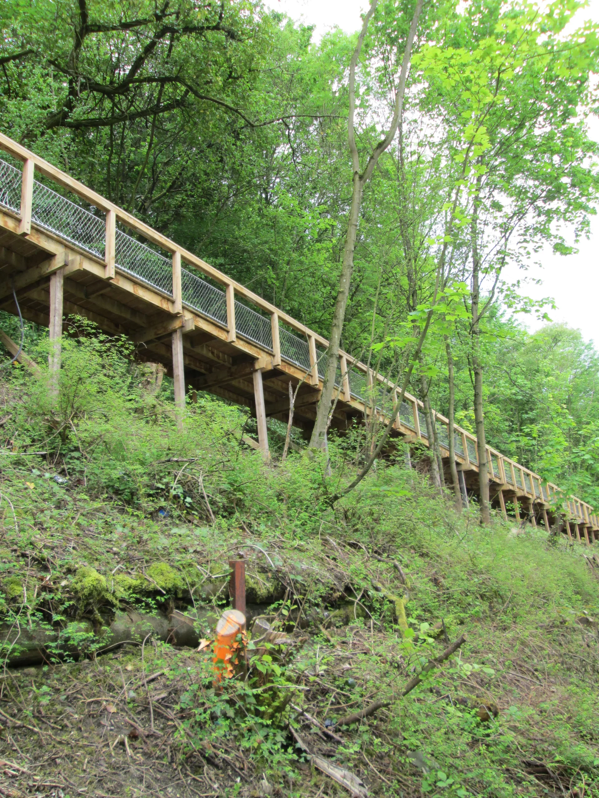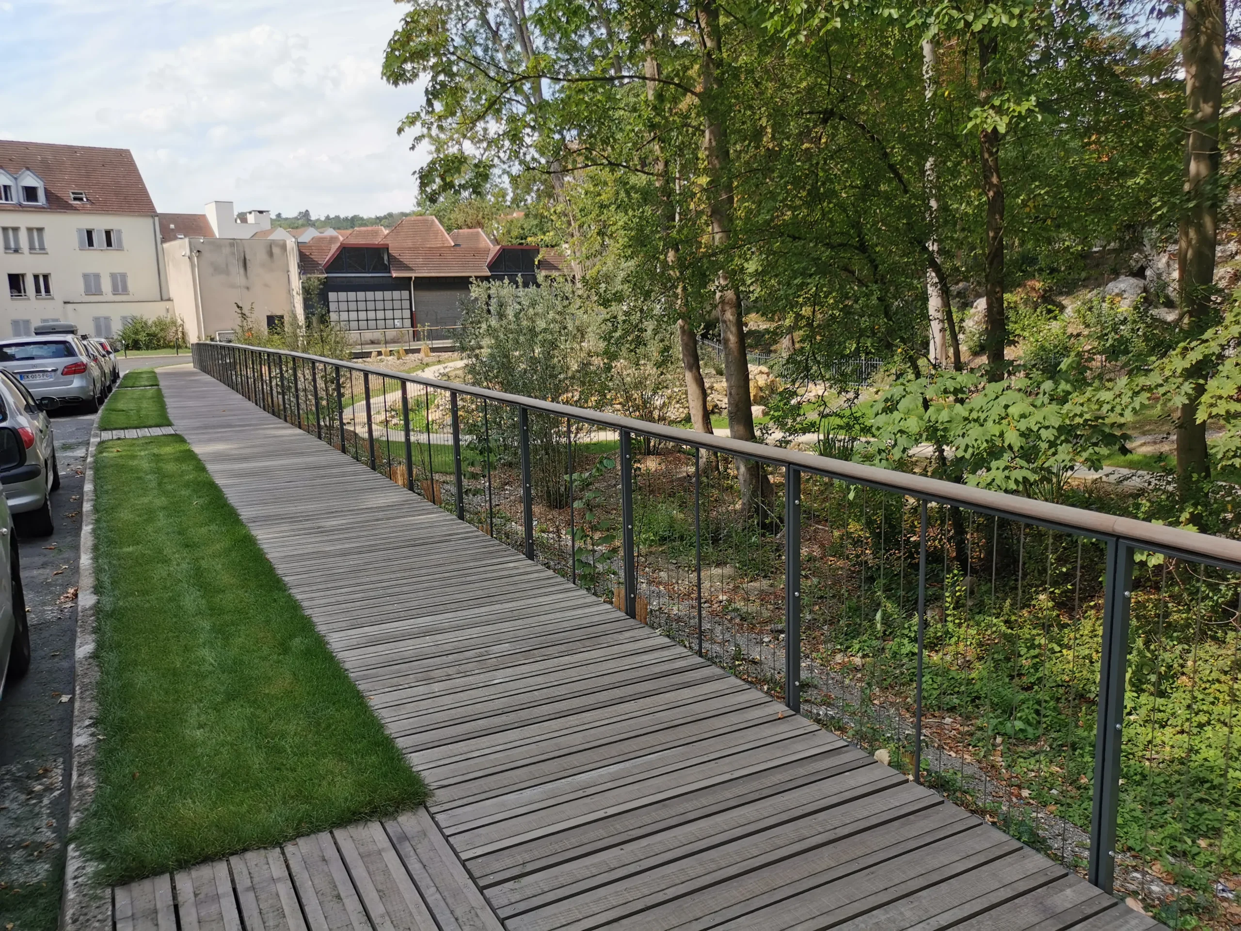 Définition : « Cheminements surélevés en bois équipés de garde-corps reposant sur des portiques intermédiaires de reprise de charge fichés dans le terrain »