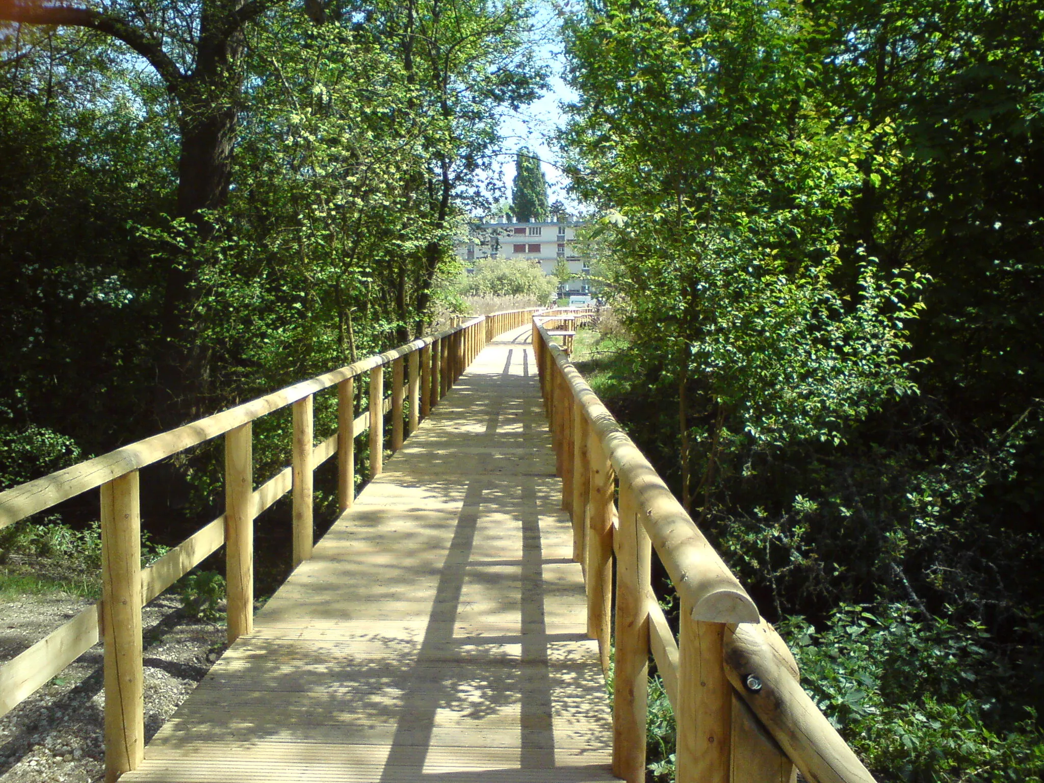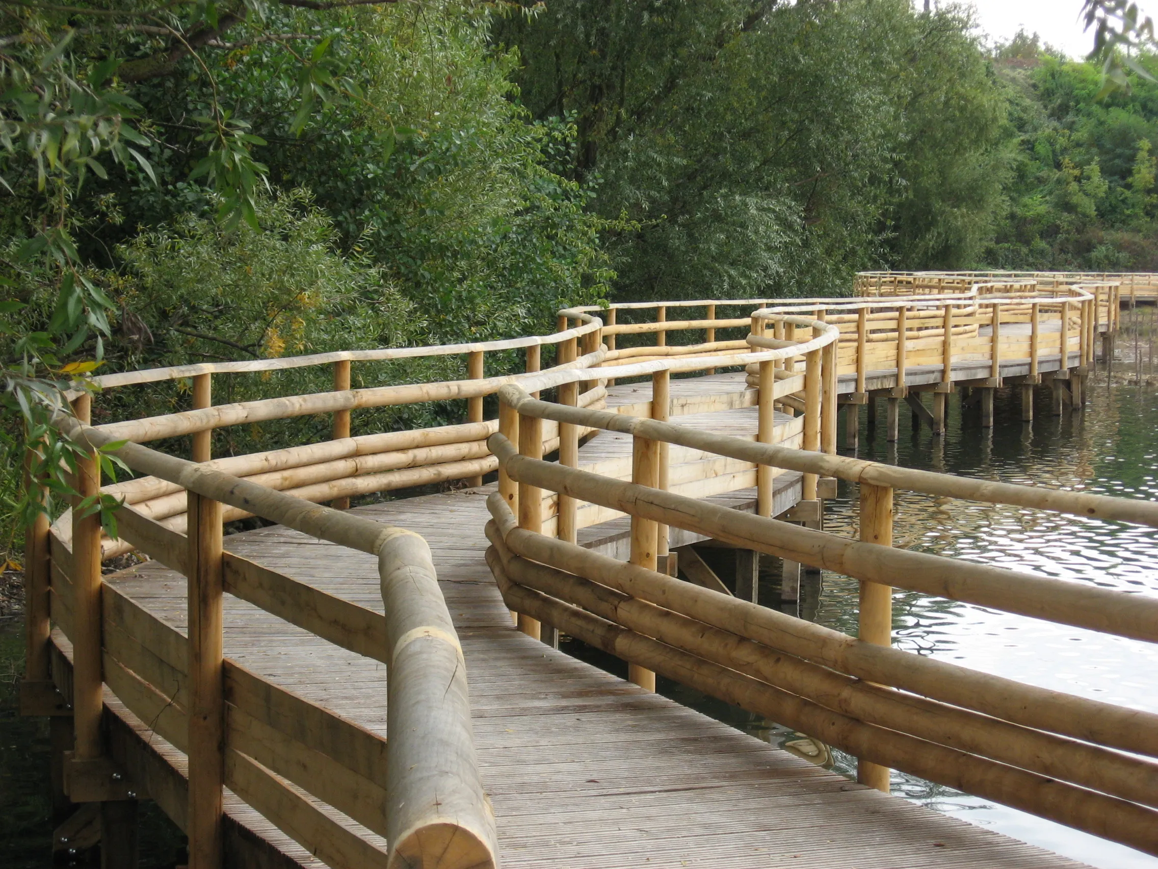 Dans les zones humides, l’entreprise a développé une spécialité dans la réalisation de platelages sur pilotis qui permettent aux visiteurs de pénétrer au coeur des marais avec un impact minimum sur le milieu.