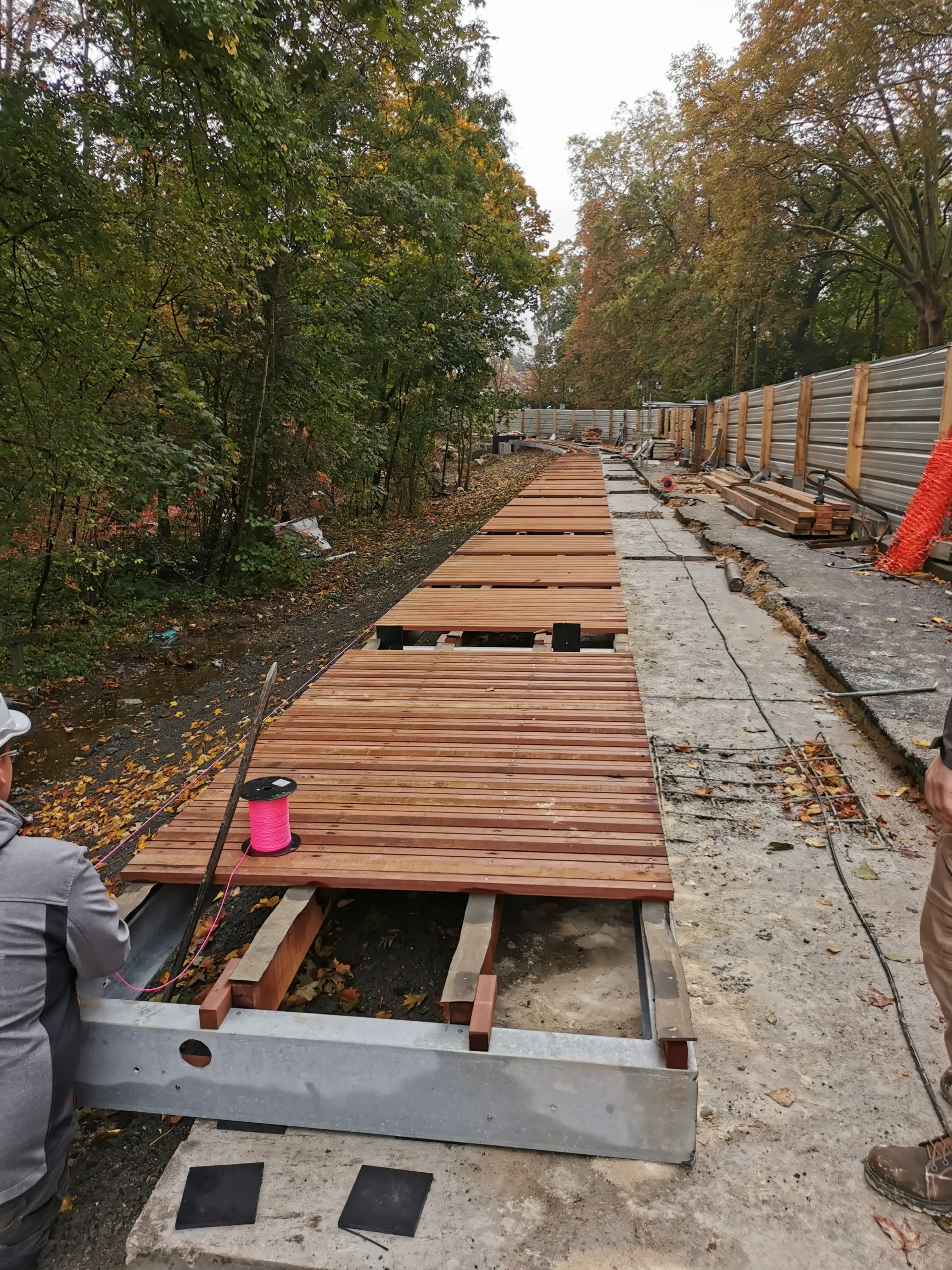 Plusieurs milliers de m² de platelages sont fabriqués et posés chaque année, principalement en bois européens naturellement durables. Le chêne et le robinier sont les essences les plus utilisées.
