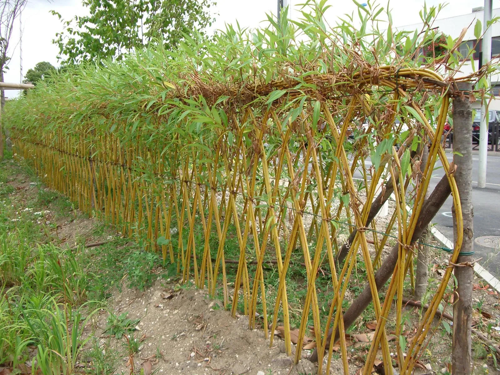 Double haie de branche de salix, tressage 2 branches en losange