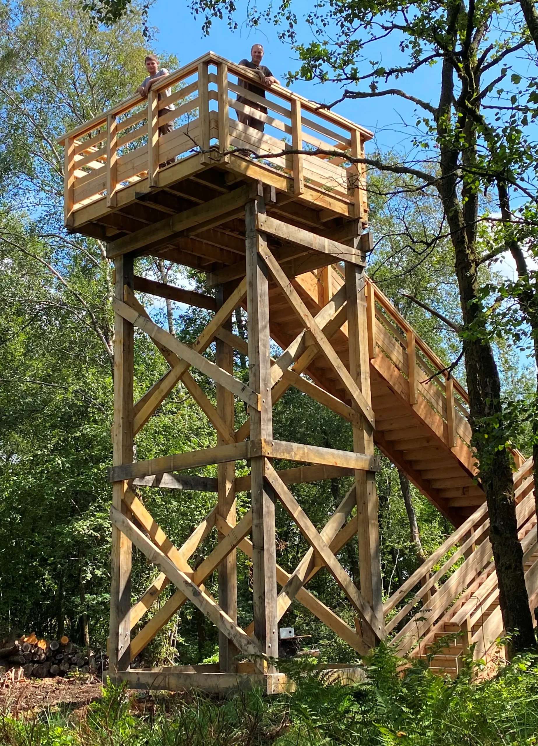 Observatoires réalisés en hauteur sur une structure en bois sans toiture de protection